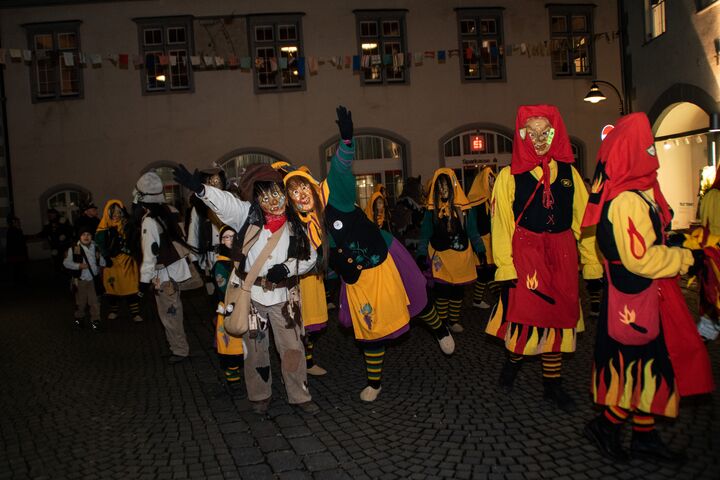 Weiter geht es mit tollen Bilder der "ersten" Veranstaltung während der Hauptfasnet in Ravensburg - das Maskenbefreien. Nachdem die Hästräger & Musikgruppen auf den Gespinstmarkt einmarschiert sind, beginnt das bunte Brauchtums-Programm.