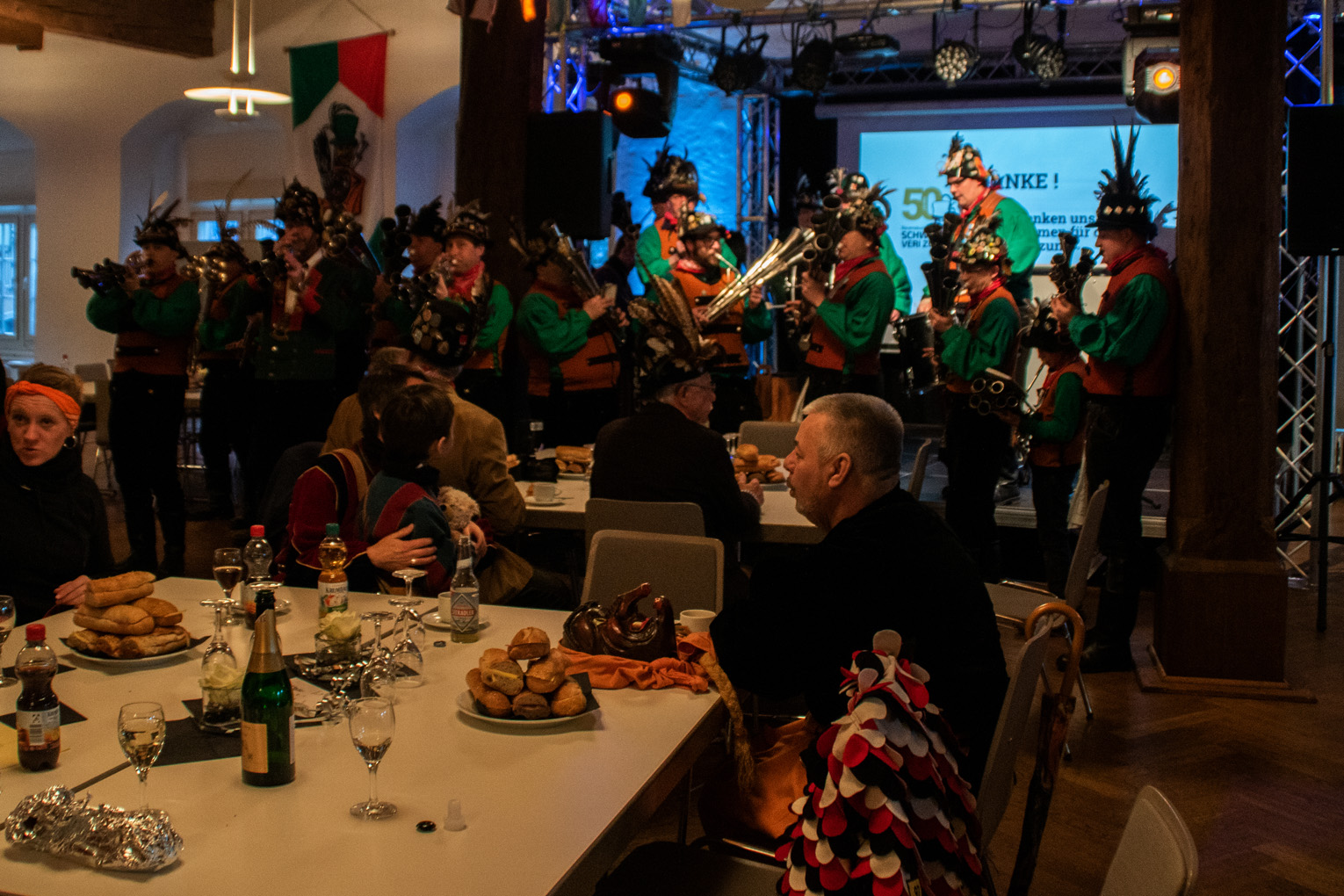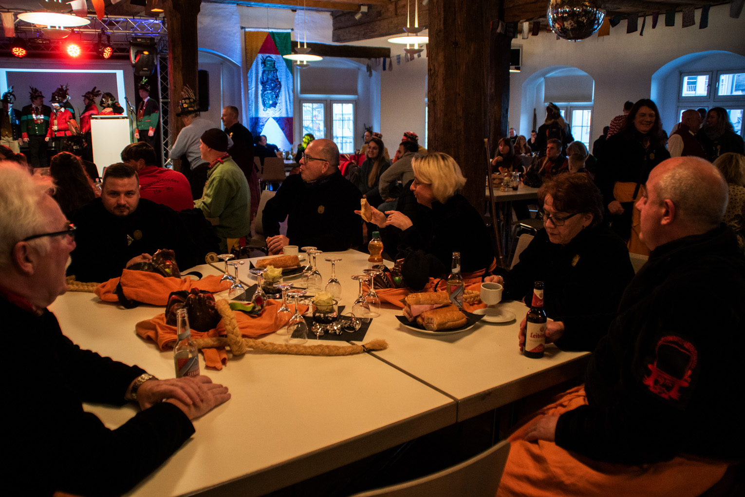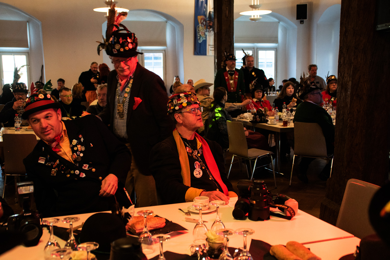 Im schönen Schwörsaal trafen sich am frühen Samstagmorgen Hästräger, Freunde und Gönner der Zunft und starteten mit der traditionellen Seelenmesse in den Samstag. Warum die Veranstaltung so heisst, dass kann man auf den Bildern der Veranstaltung gut erkennen.