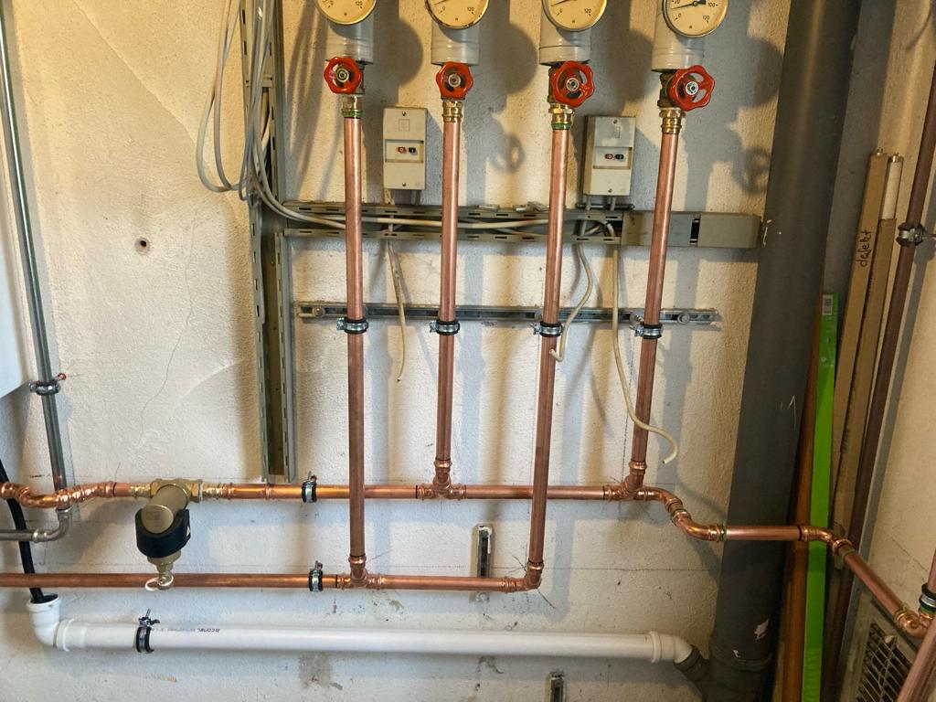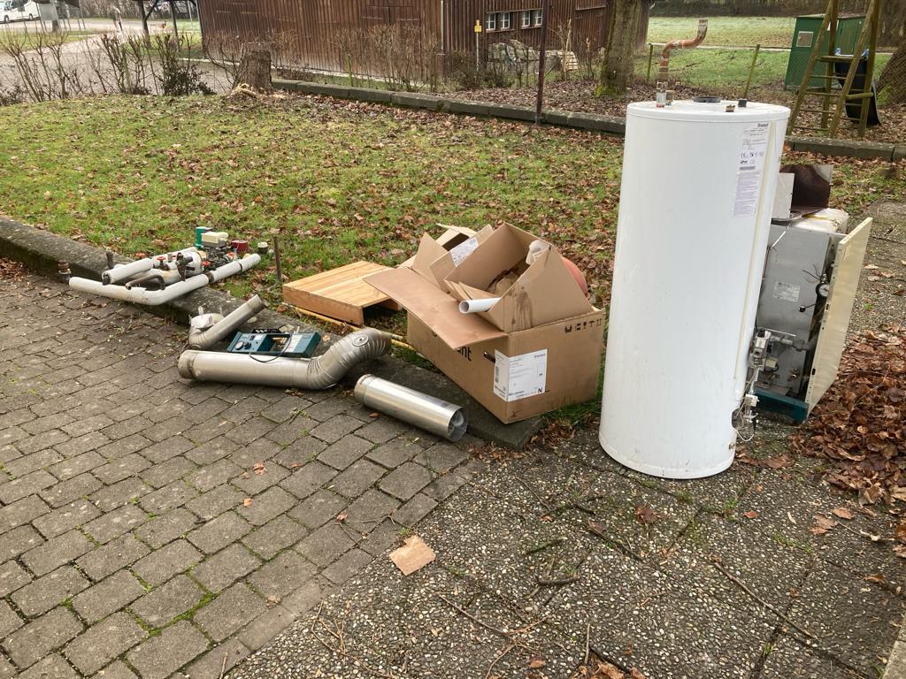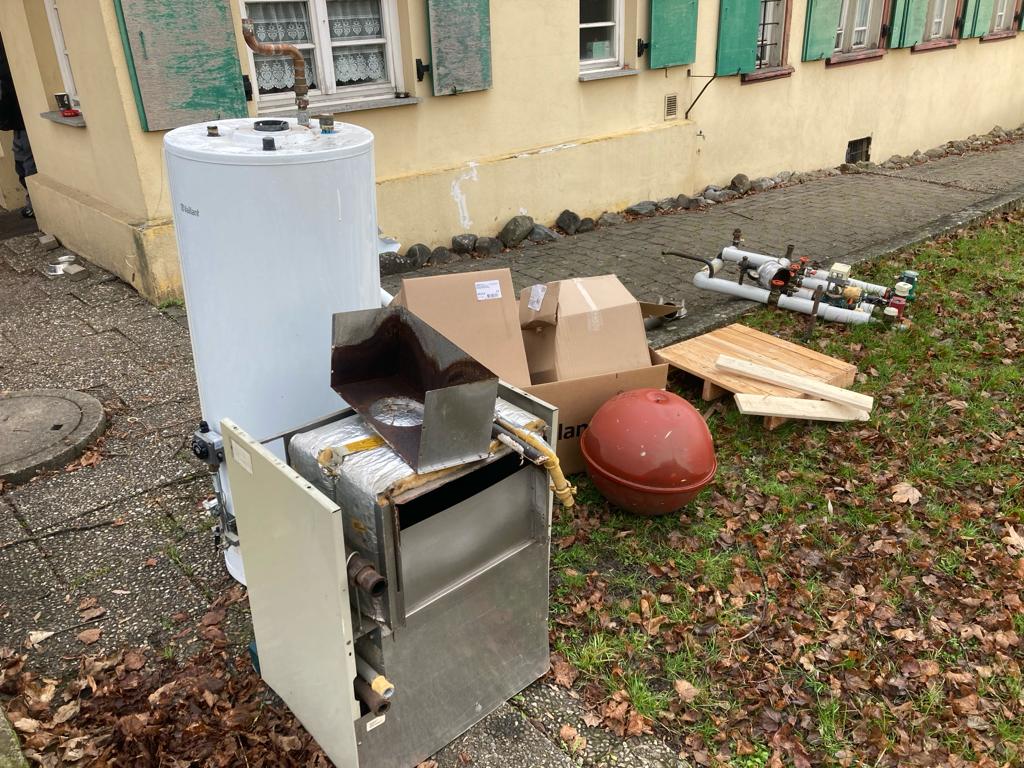 Nein - es ist nicht der Weihnachtsmann, der sich via eines Steigers den Weg durch den Schornstein in den Wernerhof bahnt. Es ist unsere neue Heizung, die noch vor dem Jahresende 2023 eingebaut wird. Da wurde geschraubt, gebogen, gehämmert, abgepresst, verlegt und und und ...