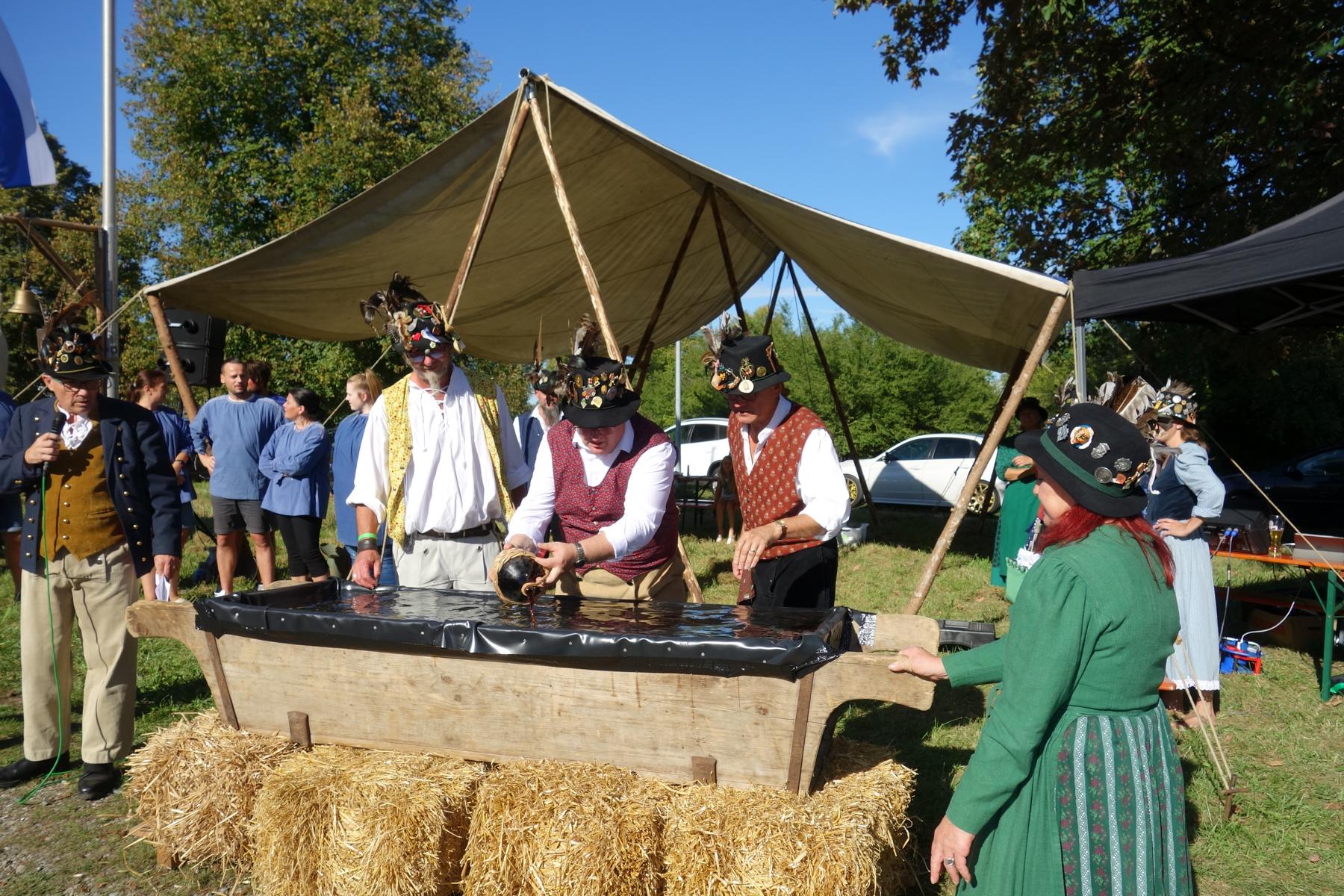 pünktlich in der Woche nach den Sommerferien und bei Kaiserwetter ... äh Räuberwetter hat sich unsere Zunft versammelt, um unsere neuen Mitglieder, welche in diesem Jahr ihren ersten Narrensprung hatten, in die Reihen unserer Zunft mit Wasser und Wein aufzunehmen.