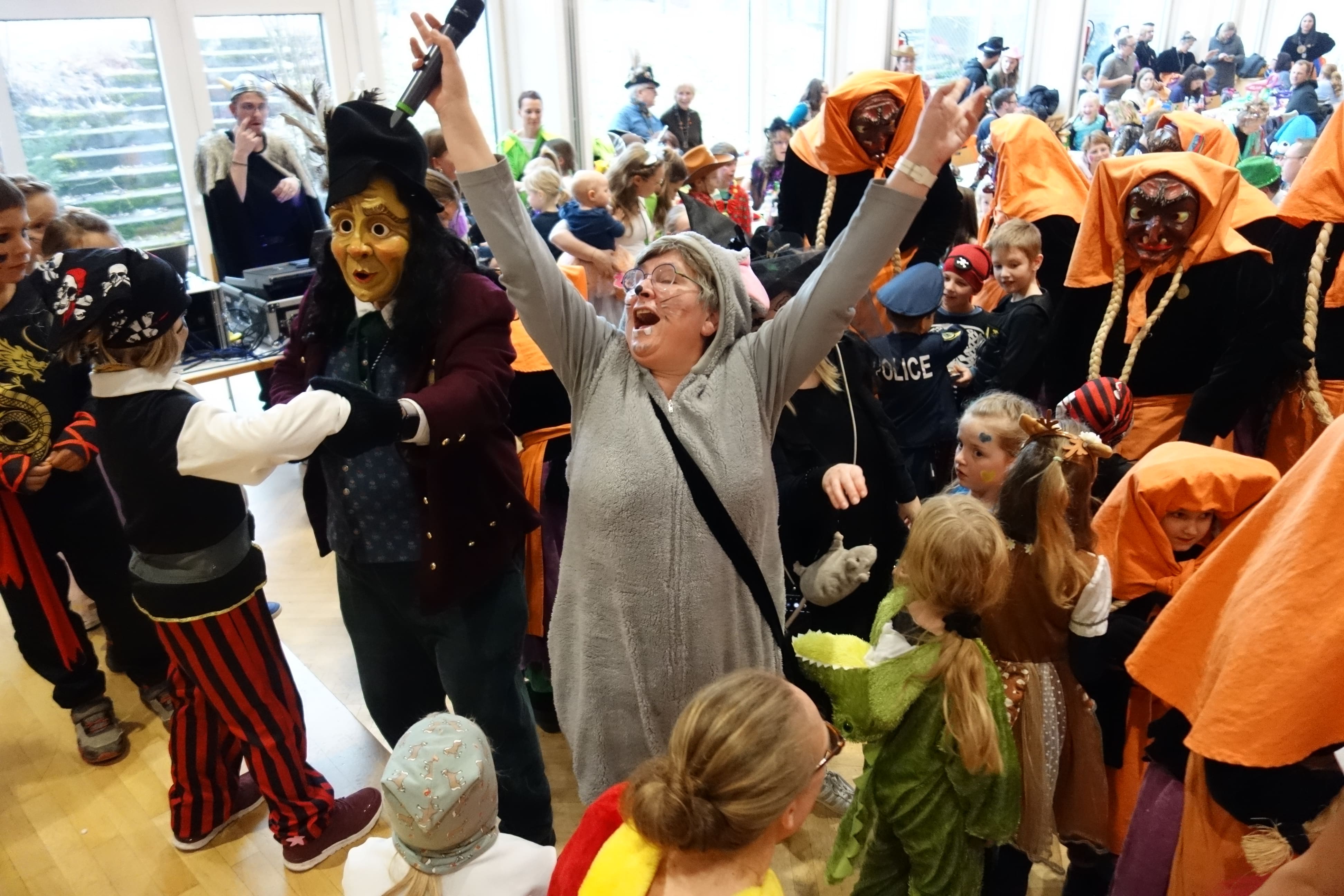 Auch der Einmarsch der Narren der Ravensburger Schwarze Veri Zunft e.V. lud die kleinen Narren zum Tanzen mit den Hästrägern ein.