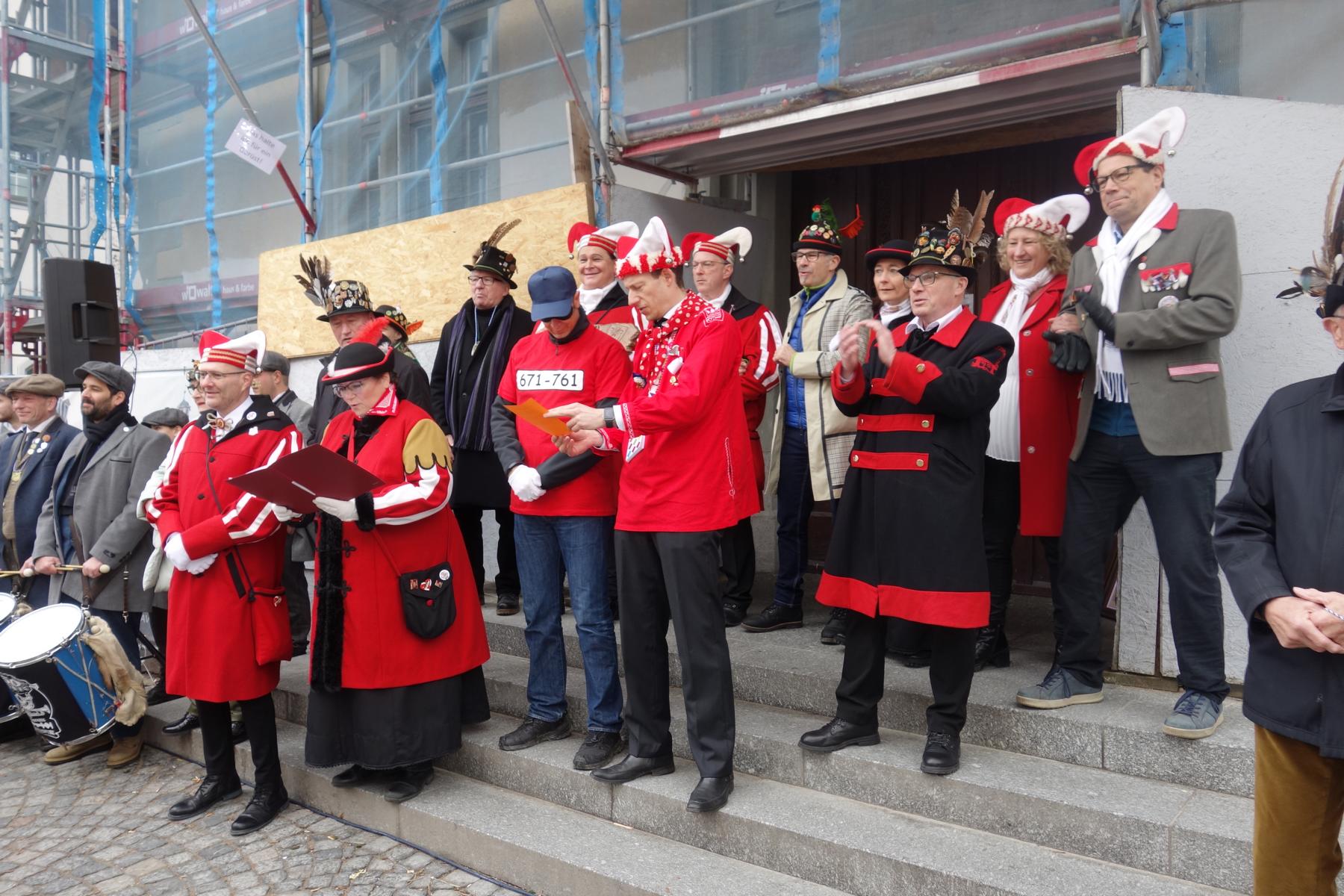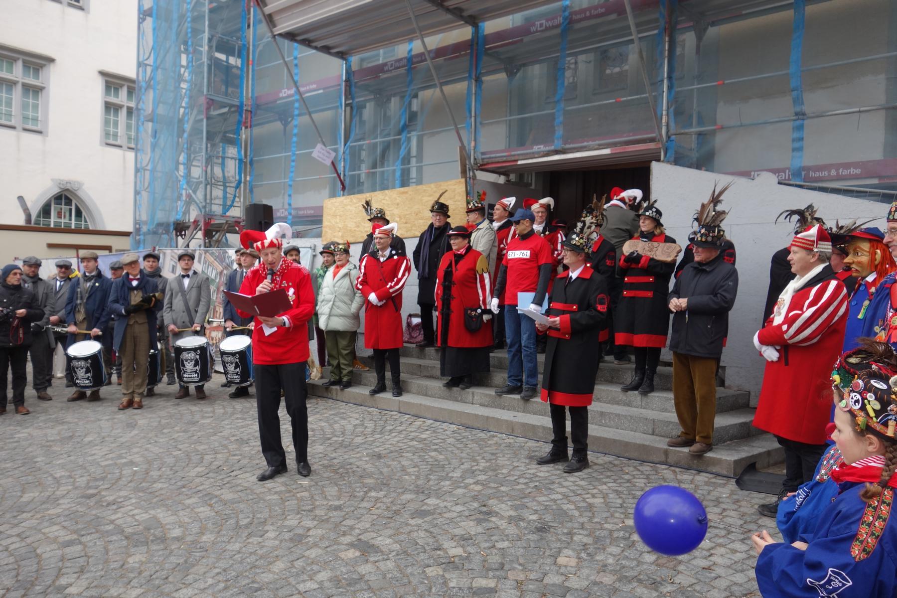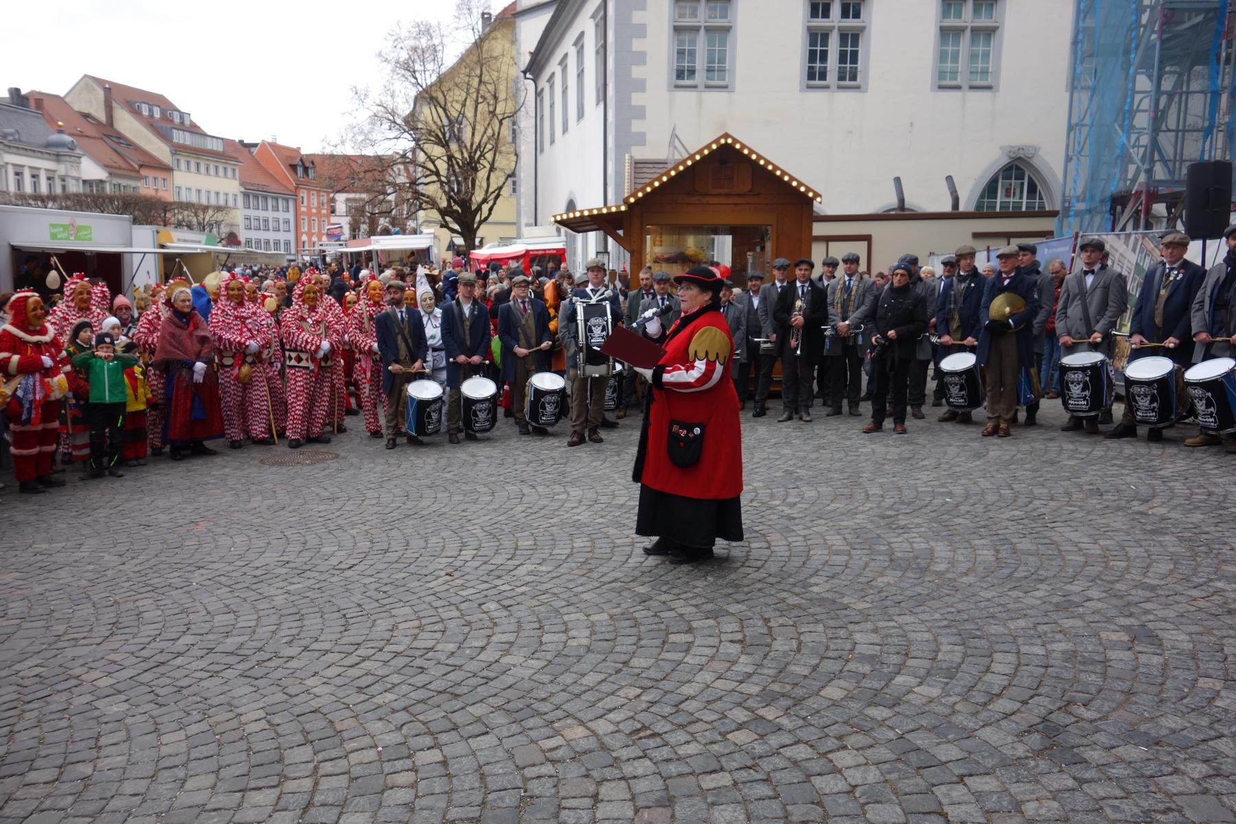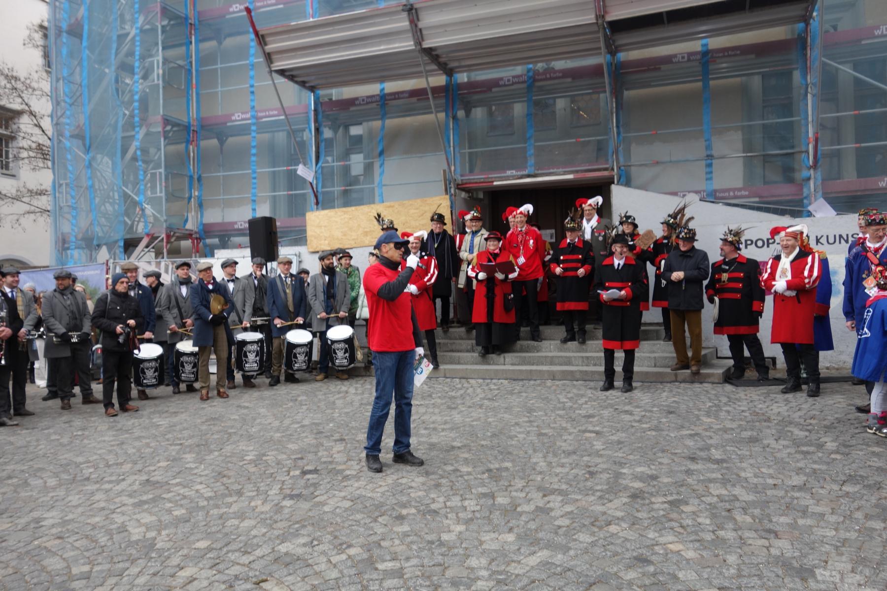Nach kurzer Ansprache der jeweiligen OB´s Clemens Moll und Dr. Daniel Rapp, den einleitenden Worten der Zunftmeisterin der Plätzler Susanne Frankenhauser sowie dem 2. Vorstand der Milka Emil Streicher (bei der Milka: eher ein wortgewaltiger Textschwall), konnte der närrische Wettstreit beginnen:
