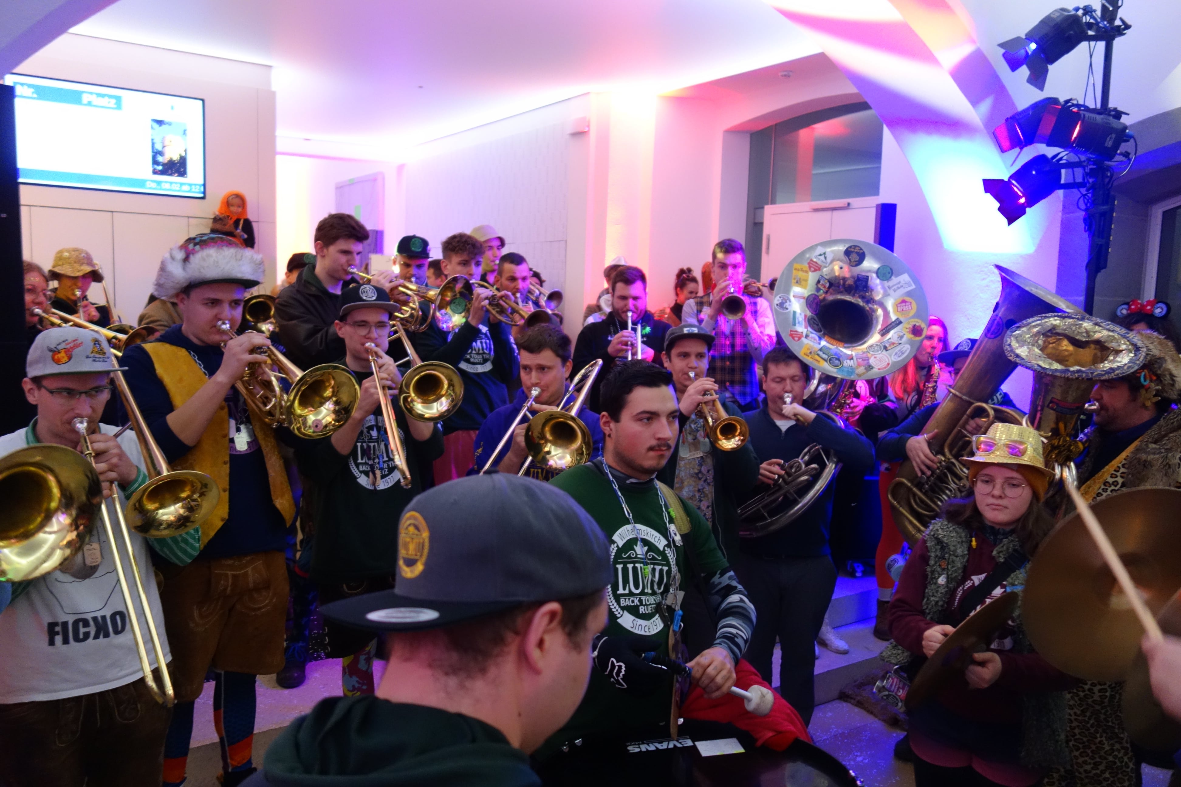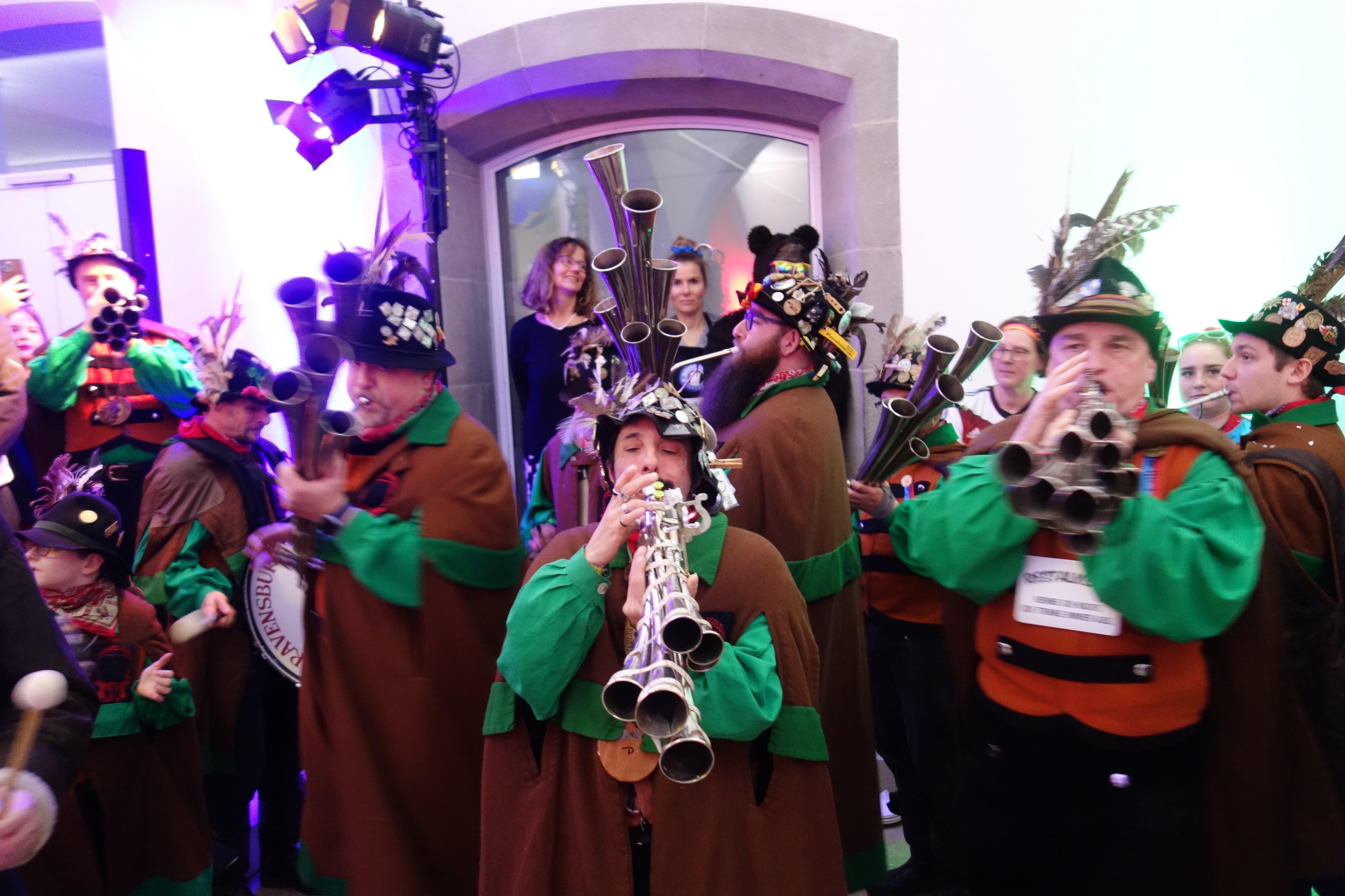 Zu den Klängen unserer Zunftschalmeien, dem Fanfarenzug Rauenspurg der Stadt Ravensburg e.V. und der LK Wilhelmsdorf wurden den Bürgermeistern und ihren Angestellten richtig eingeheizt.
