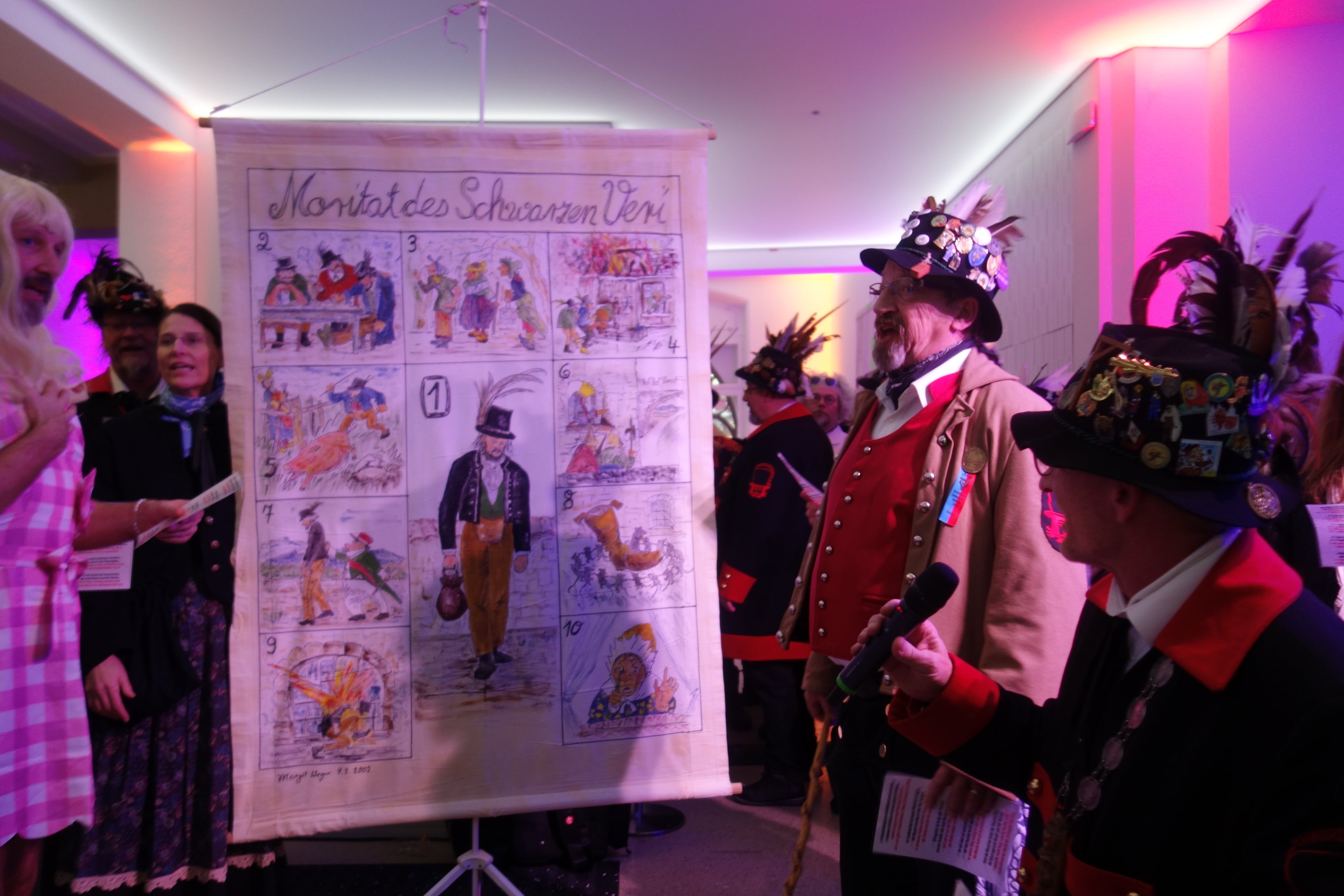Zwar zierte sich OB Dr. Daniel Rapp (wie in jedem Jahr) etwas, den Original-Stadtschlüssel an Zunftmeister Jürgen Breg auszuhändigen, dieser hatte sich aber wohlweislich schon im vorhinein einen Nachschlüssel zu Kasse der Stadt besorgt. Deshalb konnten die vorgetragenen Moritaten des Schwarzen Veri als Anschauungs- und Lernunterricht an die städtischen Beschäftigten im Umgang mit dem Geld der Ravensburger nicht schaden.