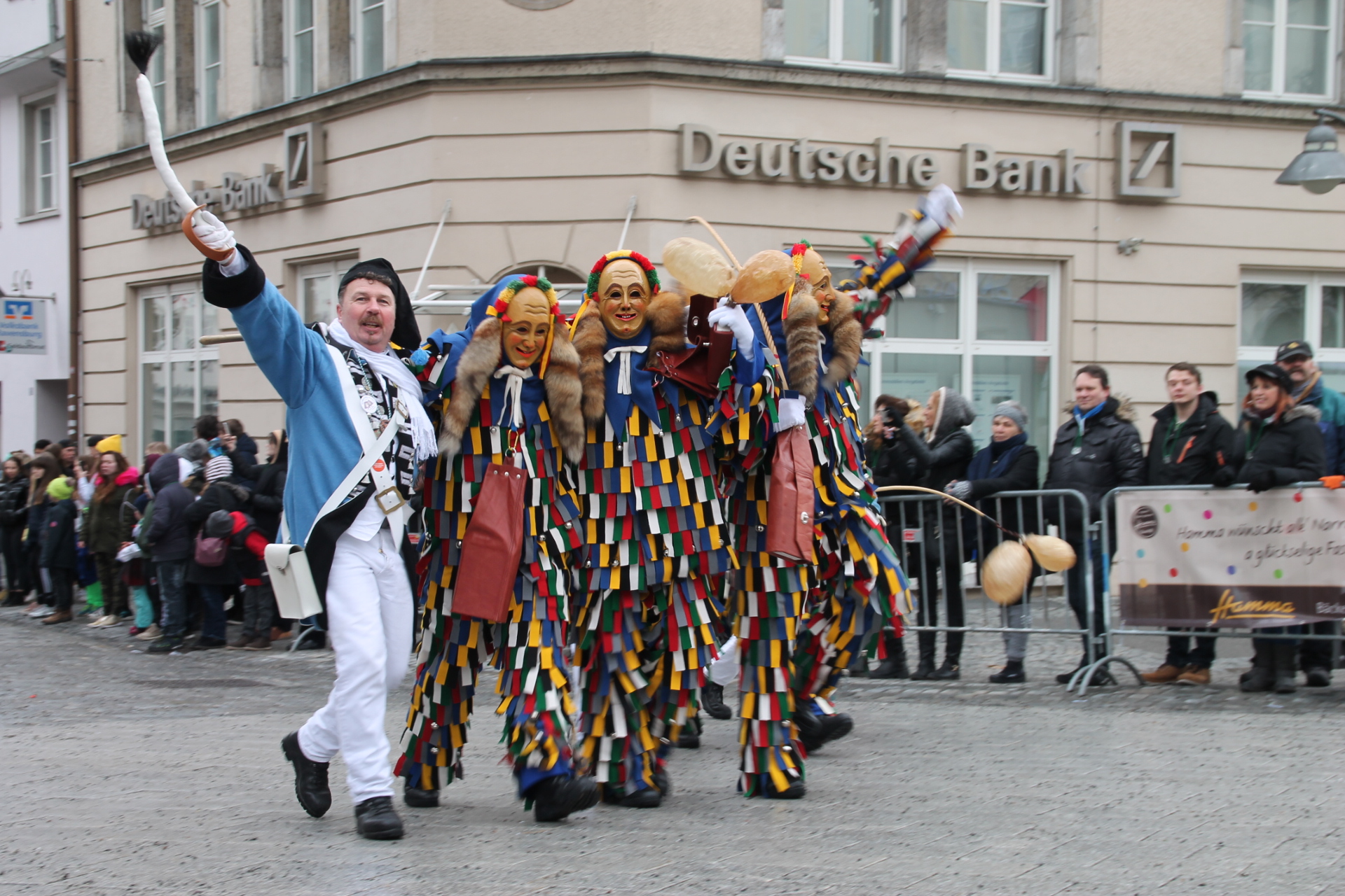 Der Narr spricht den Unvermummten auf der Gass´ oder im Lokal mit teils verstellter Stimme an und kann diesem hinter der Maske ohne Rücksicht auf dessen Stellung unverhohlen und geradeheraus den Narrenspiegel vorhalten. Dieses sogenannte Narrenrecht ist die Freiheit des Narren, jedem und allen in unverletzbarer Weise die närrische Wahrheit zu sagen.